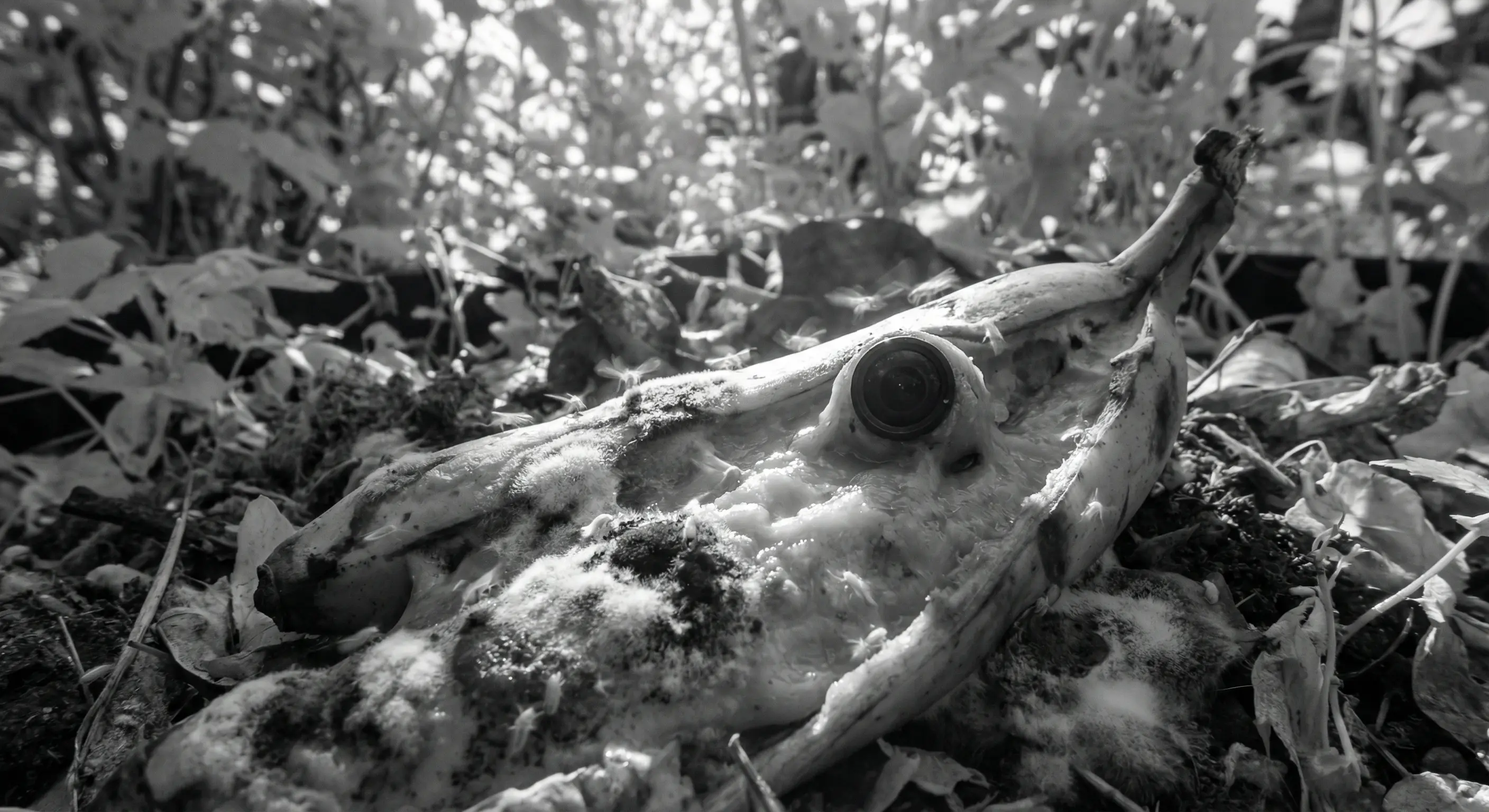 "description": "A Nano Banana Pro decaying rapidly, covered in mold and insects.",